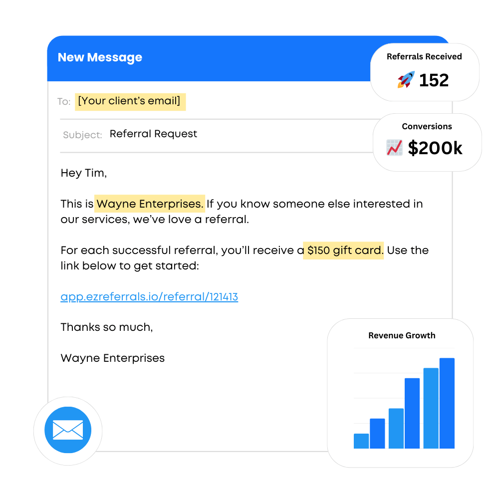 EZ Referrals turns your happiest clients into a steady stream of warm referrals with automated 1-click prompts.